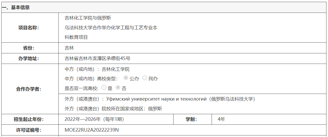 吉林化工大学与俄罗斯乌法科技大学合作举办化学工程与工艺专业本科教育项目