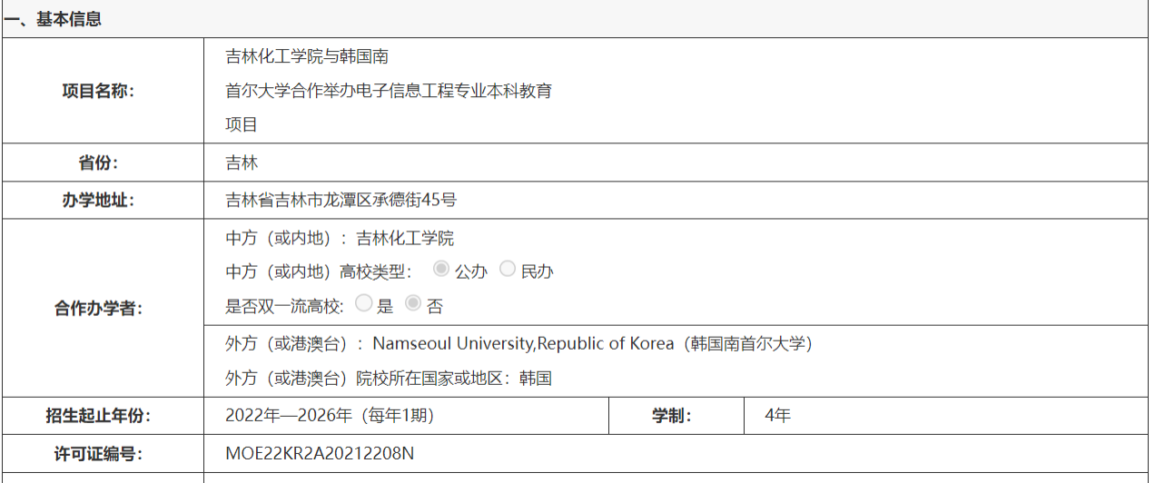 吉林化工大学与韩国南首尔大学合作举办电子信息工程专业本科教育项目